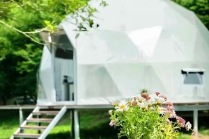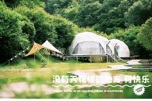 帐篷四周装饰的小灯泡将夜晚露营氛围拉满~