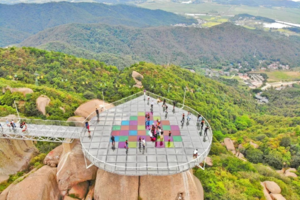 巨石山集玻璃平台、玻璃长廊、玻璃栈道三玻为一体,有520米海拔高度,520度天空绝景,巨石山520玻璃观景台,连玻璃都是爱你的形状。