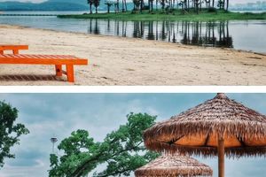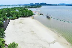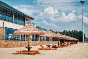 沙滩浴场分为服务区、沙滩区、戏水区、园林休闲区,并建有欧式的海盗船、情侣岛、大礁石、希腊灯塔,马尔代夫同款沙滩椅等,具有南国海滨风光,让你足不出省就能真正体验到沙滩度假的感觉。