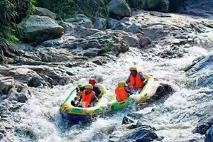 天景山大峡谷漂流景区内峡谷幽深、滩多浪急、古木参天、怪石林立、峭岩飞瀑、风光迷人。