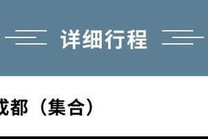 今日成都集合,入住俱乐部安排酒店。各位朋友可早些到达,自行安排成都市区的游玩活动。
