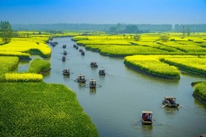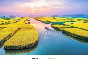 09:00抵达兴化游览中国最美油菜花之地【兴化千岛菜花景区100元】乘船游垛田风光带,这里河港纵横,菱藕飘香,块块隔垛宛如漂浮于水面岛屿,有“万岛之国”的美誉。每年春季,油菜花开,蓝天、碧水、“金岛”织就了“河有万湾多碧水,田无一垛不黄花”的奇丽画面。泛舟其中,如入迷宫,浓郁花香让人迷醉,旖旎风光令人流连忘返。