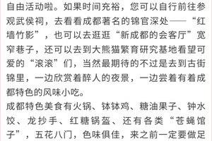 温馨提示:今日抵达成都散团时间预计为20:00-21:00,建议大家预订次日的返程大交通,避免因路况、天气等不可控因素晚点耽误您的行程。