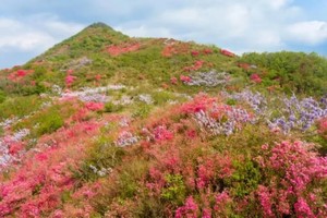 4月中旬,天马寨盛开的杜鹃或各种春花开遍大小山脊,群山就像披上“五彩丝带”,蔚为壮观。