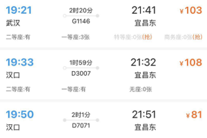 去程 D7080(武汉-宜昌东) 回程20:00以后的车次都可、也可在宜昌休息一晚品尝一下宜昌美食,费用自理。
